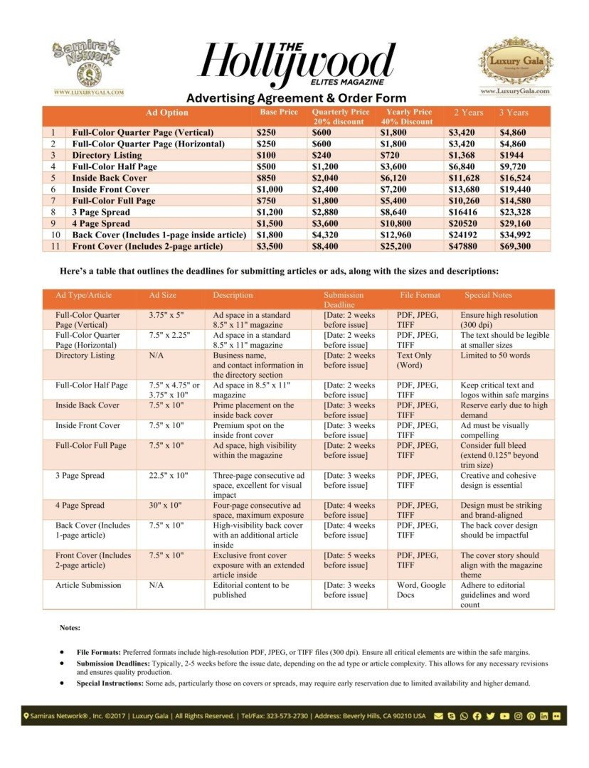 For a professional, print-ready full-color, 8.5″ x 11″ magazine ad, you need to provide the following: